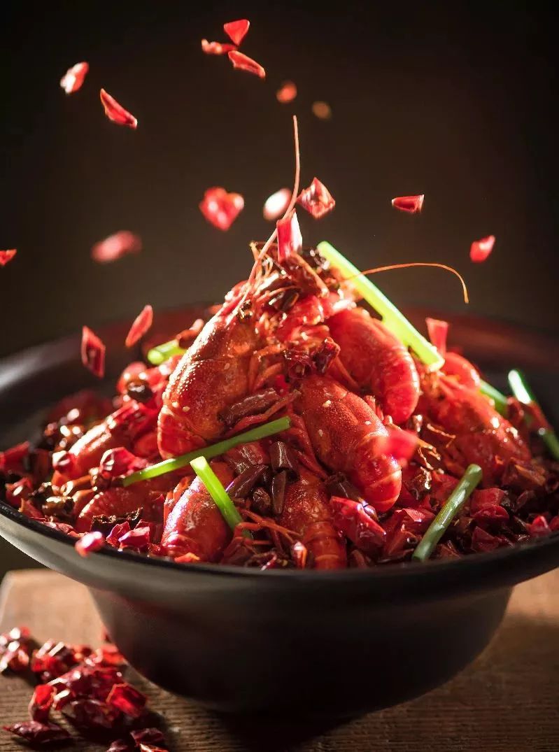 麻辣小龙虾以小龙虾为主材,配以辣椒、花椒和其他香辛料制成。成菜后,色泽红亮,口味辣并鲜香。